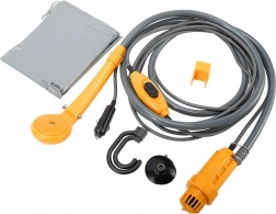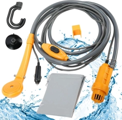 Táto prenosná cestovná sprcha je napájaná zo štandardnej 12V autozásuvky, takže ju ľahko použijete v aute, obytnom vozidle, na lodi alebo na pozemku s prístupom k batérii. Vďaka dlhému napájaciemu káblu a hadici je manipulácia pohodlná a umývanie rýchle.
