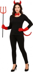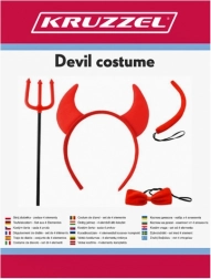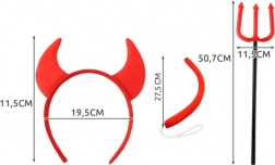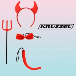 Kompletný kostým čertíka pre deti aj dospelých so 4 doplnkami: rohy na čelenke, mašľa, chvost a trojzubec. Univerzálna veľkosť s elastickými gumičkami zabezpečí pohodlné nosenie. Skvelá voľba na Halloween, karneval, narodeninové party alebo tematické akcie – vytvorte behom chvíľky výrazný a zábavný kostým.