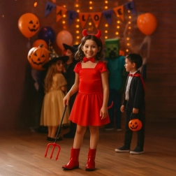 Štýlový čertí kostým v sýtej červenej farbe premení každé dieťa aj dospelého behom okamihu. Vďaka mäkkým materiálom a pružným úchytom sa doplnky ľahko nasadzujú a príjemne držia po celý čas zábavy. Sada je ideálna na domáce hranie rolí, školské besiedky, fotenie aj večierky.