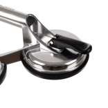 Profesionálna trojitá hliníková prísavka s priemerom gumových misiek 120 mm a nosnosťou až 150 kg na bezpečné prenášanie skla, dlaždíc, zrkadiel a ďalších hladkých materiálov. Protišmyková rukoväť a spoľahlivé pákové zaistenie zaručujú istý úchop a pohodlnú prácu.