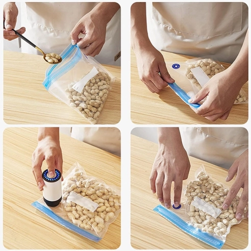 Prevádzka vákuovej pumpy je jednoduchá – stačí umiestniť potraviny do zipových vreciek a stiskom tlačidla odsávať vzduch. Takto balené potraviny ponúkajú výborný spôsob, ako na cestách udržať zásoby čerstvé.