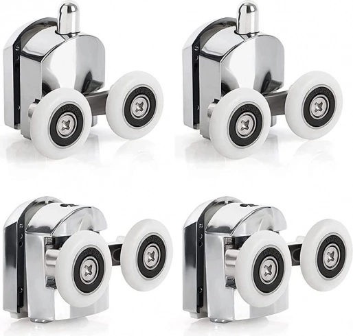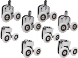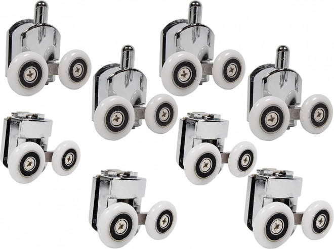 Vďaka kvalitnému spracovaniu s presnými ložiskami valčeky podporujú plynulé a tiché otváranie a zatváranie sprchových dverí. Sada obsahuje osem valčekov – štyri horné a štyri spodné – podporujúce stabilitu dverí.