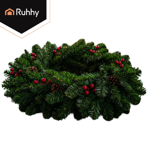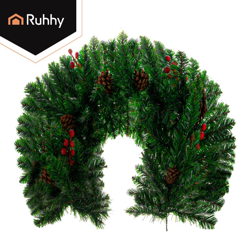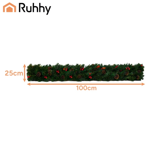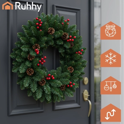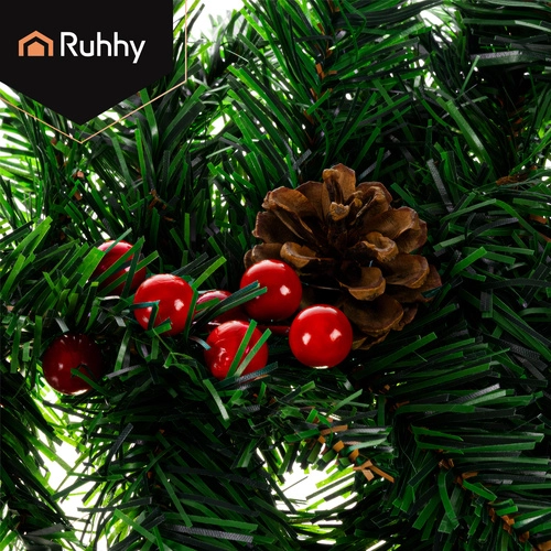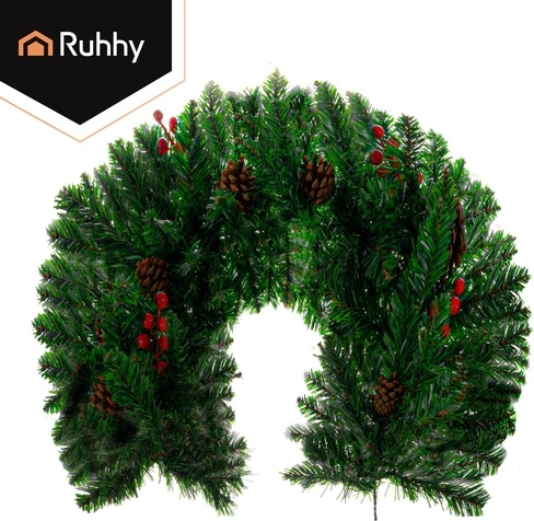 Štýlová vianočná girlanda 1 m s hustým PVC ihličím je ideálna na výzdobu dverí, balkónov, zábradlí či stĺpov. Vďaka plasticite ju ľahko vytvarujete podľa potreby – od rovného lemovania až po viacvrstvové kruhové dekorácie. Integrované šišky a vetvičky s červenými bobuľami dodajú prirodzený, elegantný nádych.