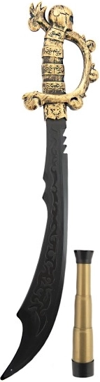 Táto pirátska sada dodá každému malému dobrodruhovi odvahu a fantáziu. Dominantou je ľahké a bezpečné plastové ostrie s dĺžkou 58 cm s ozdobnou rukoväťou, ktoré skvele padne do ruky. Spolu s doplnkami vytvorí autentický pirátsky vzhľad pre role-play hry, kostýmy aj tematické akcie.