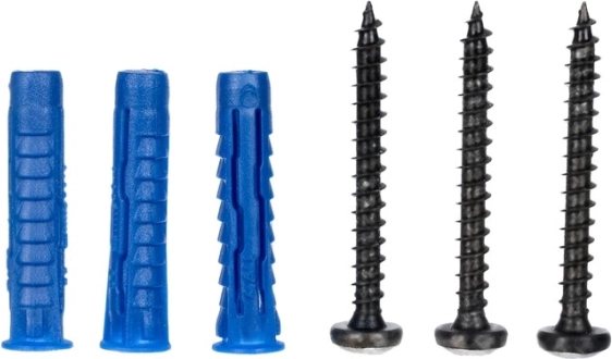 V balení sú hmoždinky a skrutky – stačí vyvŕtať otvory 5 mm a vešiak pevne prichytiť k stene.