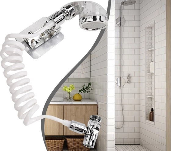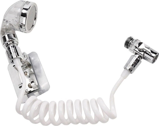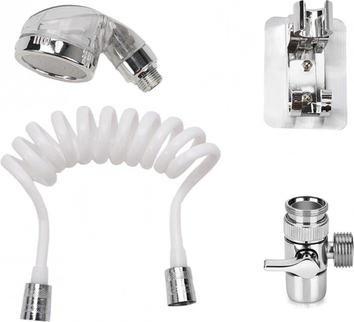 - Obsahuje hadicu pripojenú k rukoväti sprchy, ktorú možno jednoducho namontovať na stenu.