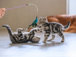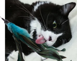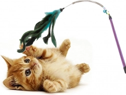 Farebné pierka sú mäkké a lákajú mačky k interakcii.