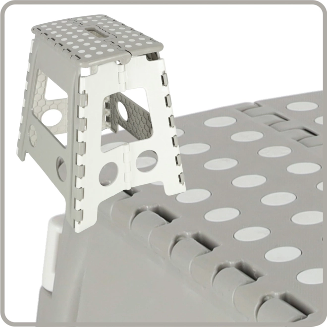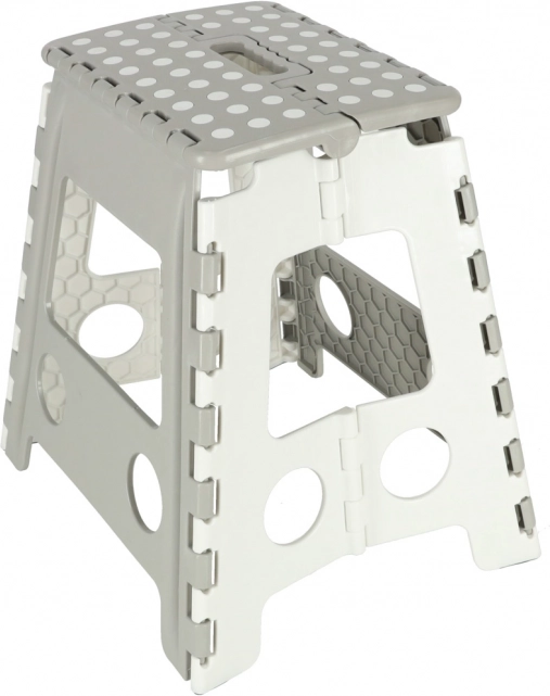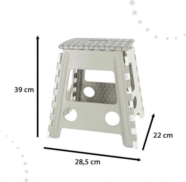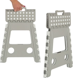 Ľahká a pevná skladacia stolička vo svetlosivej farbe pridá potrebných 39 cm výšky, má nosnosť až 150 kg a protišmykový povrch pre bezpečný krok. Vďaka skladacej konštrukcii a rukoväti ju ľahko prenesiete aj uložíte.