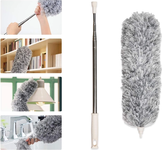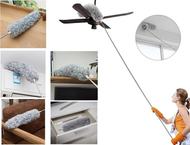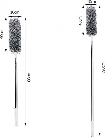 S teleskopickou metlou na prach sa zbavenie prachu stáva hračkou. Vďaka svojmu teleskopickému dizajnu, ktorý sa predĺži až na 280 cm, ľahko dosiahnete na vysoké stropy, lampy a ďalšie neprístupné plochy. Dlhé štetiny efektívne zbierajú prach, zatiaľ čo ľahký a praktický dizajn uľahčuje manipuláciu.