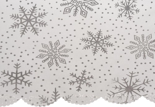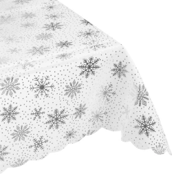 Tento vianočný obrus je ideálnym doplnkom k vášmu slávnostnému stolu. Vďaka svojmu dizajnu, ktorý je zdobený striebornými snehovými vločkami a bodkami, dodáva stolu ozdobný vzhľad a chráni ho pred poškodením a škvrnami počas slávnostných jedál. Obrus je vyrobený z polyesteru, je ľahko udržiavateľný a možno ho prať, takže ho môžete použiť opakovane rok čo rok.