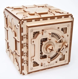 Súčasťou je kombinačný zámok s možnosťou nastavenia vlastného kódu (z výroby 3–2–1). Trezor je ideálny na uloženie drobností, mincí či kariet a zároveň ako štýlová dekorácia aj edukačná pomôcka na pochopenie princípov mechaniky. Odporúčané pre staviteľov od 14 rokov.