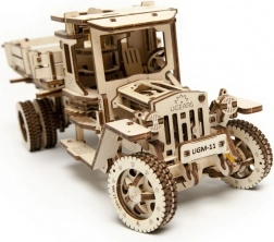 UGM-11 je vybavený prevodovkou s voľnobehom a spiatočkou, ovládaním rýchlosti (plynový pedál) a ručnou brzdou. Pružená predná náprava zabezpečuje plynulý pohyb, zatiaľ čo sklopné bočnice korby sú pripravené napríklad pre vaše vizitky. Model je navrhnutý a vyrobený na Ukrajine a poteší pri stavbe aj pri prevádzke.