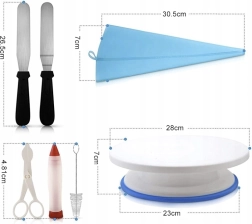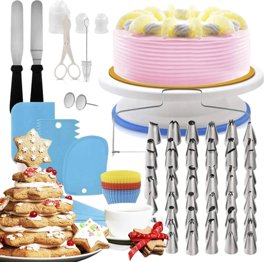 Veľmi rozsiahla a prepracovaná sada na zdobenie obľúbených tort, sušienok, cupcakes, muffinov a pod. Profesionálna sada, ktorá poslúži ako cukrárskym začiatočníkom pri domácej príprave tort a zákuskov k narodeninám, meninám alebo sviatku, tak aj ostrieľaným kuchynským odborníkom. Vyrobené z vysoko kvalitného plastu, silikónu a nehrdzavejúcej ocele.