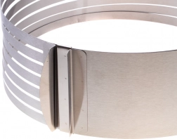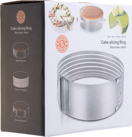 Krúžok umožňuje nastaviť priemer medzi 15 a 20 cm, čo zlepšuje flexibilitu pri použití na rôzne veľkosti tort.