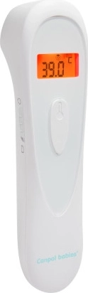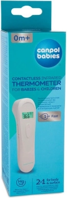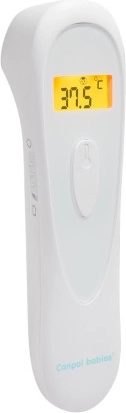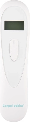 Bezkontaktný infračervený teplomer EasyStart od Canpol babies zaručuje rýchle a presné meranie teploty, kedykoľvek to potrebujete. Na dosiahnutie presných výsledkov stačí jedna sekunda. Zariadenie súčasne interpretuje nameranú teplotu a signalizuje ju farbou. Ideálny pre najmenšie deti. Umožňuje diskrétne meranie počas spánku a čitateľný podsvietený displej uľahčí používanie teplomera aj v noci. Vďaka zabudovanej pamäti môžete jednoducho vidieť výsledky posledných 25 meraní. Teplomer možno použiť na meranie teploty tela aj predmetov, tekutín, pokrmov a prostredia. V prípade potreby tak môžete ľahko skontrolovať teplotu detskej stravy alebo vody vo vani. Pohodlný, praktický tvar a intuitívne ovládanie zaručujú komfort pri používaní. Je nevyhnutným produktom v každej domácej lekárničke a tiež vo výbavičke pre bábätko. Bezkontaktný – zaručuje diskrétne meranie aj počas spánku. Rýchle a presné meranie teploty za 1 sekundu! Farebná interpretácia výsledku – uľahčuje rýchle vyhodnotenie teploty. Čitateľný, podsvietený LCD displej – uľahčuje zobrazenie výsledku v tme. Umožňuje merať teplotu potravín a tekutín. Pamätá si posledných 25 meraní. Automatické vypnutie (po viac ako 10 sekundách v pohotovostnom režime). Bezpečné a hygienické používanie. Meria teplotu tela a prostredia – napríklad vody vo vani. Vždy dodržiavajte nasledujúce základné bezpečnostné opatrenia: Nenechávajte teplomer v blízkosti detí alebo osôb so zdravotným postihnutím bez dozoru. Teplomer používajte iba na účel opísaný v návode vo vnútri balenia. Teplomer nepoužívajte, ak nepracuje správne alebo v prípade, že je poškodený. Upozornenia a bezpečnostné opatrenia: Tak ako pri iných teplomeroch, správna technika merania je zásadná pre získanie presného odčítania teploty. Pred použitím si pozorne prečítajte tento návod na použitie. Teplomer používajte iba v rozsahu teplôt 5°C až 40°C (41°F až 104°F) a pri relatívnej vlhkosti vzduchu od 15 do 93 %. Teplomer skladujte na chladnom a suchom mieste od -20°C do 70°C (-4°F až 158°F) a pri relatívnej vlhkosti vzduchu od 15 % do 93 %. Zariadenie nevyžaduje kalibráciu. Jednotka neobsahuje žiadne diely opraviteľné používateľom. Pred použitím skontrolujte stav teplomera. Nepoužívajte poškodený teplomer. Nie sú vyžadované žiadne ďalšie kontroly tretích strán. Neupravujte zariadenie. Nepoužívajte zariadenie v blízkosti horľavých látok. Výrobca poskytuje schémy zapojenia, zoznamy súčiastok, opisy, pokyny na kalibráciu, aby pomohol SERVISNÉMU PERSONÁLU pri oprave dielov. Nečistite ani nevykonávajte údržbu zariadenia, keď je zapnuté. Chráňte pred priamym slnečným žiarením. Zabráňte pádu teplomera. Ak teplomer upustíte a máte podozrenie, že sa mohol poškodiť, okamžite kontaktujte zákaznícky servis. Nedotýkajte sa šošovky teplomera. Nedotýkajte teplomerom pokožky pacienta. Zariadenie nerozoberajte. Vždy dodržiavajte základné bezpečnostné opatrenia, najmä ak teplomer používate u detí alebo v ich blízkosti, či osôb so zdravotným postihnutím. Teplomer nenahrádza lekársku konzultáciu. Pred vykonaním merania musia teplomer aj pacient zostať v prostredí so stabilnou teplotou po dobu najmenej 30 minút. Ak displej sčervenie a zobrazí sa hodnota od >37,9°C (100,2°F) do