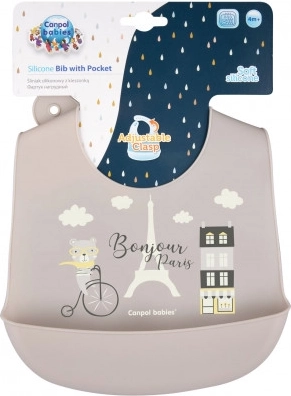 Canpol babies Silikónový podbradník s vreckom BONJOUR PARIS béžový