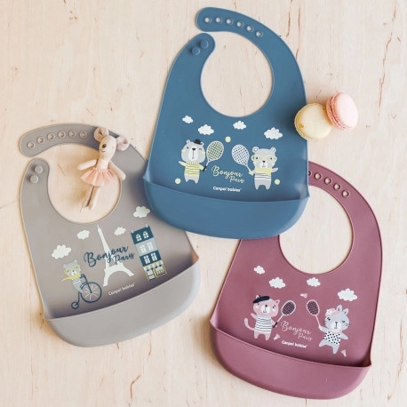 Rozšírenie štýlovej kolekcie Bonjour Paris je tu! Doplňte si výbavičku pre bábätko o tento praktický vodeodolný podbradník, ktorý ochráni oblečenie dieťaťa pred zašpinením. Disponuje praktickým vreckom, ktoré zachytí padajúce kúsky jedla. Nastaviteľné zapínanie umožňuje jednoduché prispôsobenie veľkosti aktuálnej potrebe. Podbradník je perfektný na domáce použitie aj na cesty. Je vyrobený zo 100 % ľahkého a bezpečného silikónu. Podbradník je dostupný v 3 farebných variantoch v súlade s najnovšími trendmi. Praktický, vodeodolný – ochráni oblečenie vášho dieťaťa pred znečistením. Nastaviteľné zapínanie – umožňuje jednoduché prispôsobenie veľkosti podbradníka aktuálnej potrebe. Praktické vrecko – zachytí padajúce časti pokrmu. Moderné farebné prevedenie – inšpirované najnovšími trendmi. Ľahký – vyrobený zo 100 % bezpečného silikónu. Jednoduchá údržba – podbradník je možné umývať v umývačke riadu. Perfektný na cestovanie! Návod na použitie. Udržiavajte v čistote. Umývajte šetrným mycím prostriedkom v teplej vode, dôkladne opláchnite. Prelejte vriacou vodou. Môžete umývať v umývačke riadu. Pozor! Dôležité pre bezpečnosť a zdravie vášho dieťaťa! Pred každým použitím skontrolujte kvalitu výrobku. Pri prvých známkach opotrebovania alebo poškodenia výrobok ďalej nepoužívajte – vymeňte ho za nový. Výrobok nie je hračka. Uchovávajte mimo dosahu dieťaťa. Otvorte energickým odtrhnutím kartónu, nepoužívajte nožnice. Upozornenie! Plastový obal (balenie) uchovávajte mimo dosahu dieťaťa, predídete tak možnosti zadusenia dieťaťa obalom. Silikónový podbradník zodpovedá požiadavkám: Smernica Európskeho parlamentu a Rady 2001/95/ES o všeobecnej bezpečnosti výrobkov