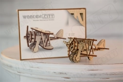 Stavebnica je vyrobená z kvalitnej brezovej preglejky a skladá sa bez nutnosti použitia lepidla či náradia. Rozmery zloženého modelu sú cca 16,1 x 14 x 8,8 cm. Stane sa skvelým darčekom pre milovníkov lietadiel a zaručí hodiny zábavy a poznania mechanických prevodov a ozubených koliesok.
