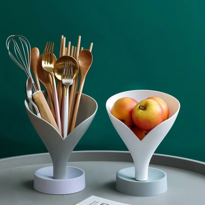 Dizajnový odkvapkávač na zeleninu, ovocie a na krájané plátky. Môžete ho umiestniť kamkoľvek na kuchynskú linku, zaberie len veľmi málo miesta. Praktický odkvapkávací lievik odvádza vodu do nádoby. Elegantná povrchová úprava sa bude hodiť k dekoru každej kuchyne. Možno ho použiť na utierky a hubky.