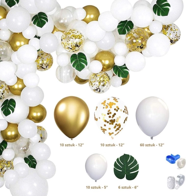 Balóniková girlanda 90 ks – zlatá biela + listy