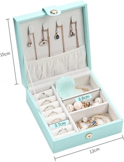 Medzi osobné veci každej ženy šperky. Kazeta na šperky je nepostrádateľnáspoľahlivý výrobok na uloženie vašich cenností. Oddelené priehradky a zásuvky poskytujú dokonalé úložisko pre náušnice, náramky, hodinky, retiazky, okuliare a ďalšie cennosti. Kazeta na šperky odstráni problém s retiazkami zamotanými do seba, trením a poškriabaním. Na veku sú 3 háčiky na zavesenie retiazok. Na druhej strane pod ním nájdete priestor pre náušnice, prstene, náramky, hodinky a ďalšie drobnosti. Mäkké polstrovanie chráni vzácne šperky pred poškriabaním.