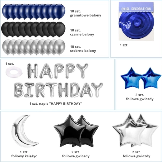 Sada narodeninových balónikov – tmavomodrá a čierna