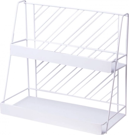 Táto metalová polička je ideálna na organizáciu priestoru v kúpeľni alebo spálni. S drôtenými poličkami v tvare regálu môžete udržať poriadok aj v malej toalete alebo pri veľkom množstve kozmetiky na toaletnom stolíku. Využite extra miesto na vaše doplnky.