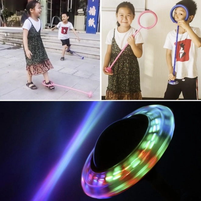 Červená detská skákacia hračka s LED svetlami je ideálna pre rozvoj koordinácie a obratnosti detí. Táto hračka umožňuje viac zábavy vďaka svietiacim LED diódám.