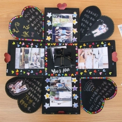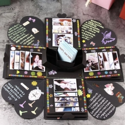Prekvapte svojich blízkych unikátnym darčekom v podobe čiernej výbuchovej darčekovej krabičky. Táto krabička je perfektným prekvapením na svadbu, Valentína, zásnuby, narodeniny alebo akúkoľvek inú slávnostnú príležitosť. Do najmenšej krabičky môžete vložiť šperk, hodinky alebo iný drobný darček. Dekorujte interiér fotografiami, pozdravmi či čímkoľvek, čo vás napadne, a urobte z tohoto darčeka niečo nezabudnuteľné.