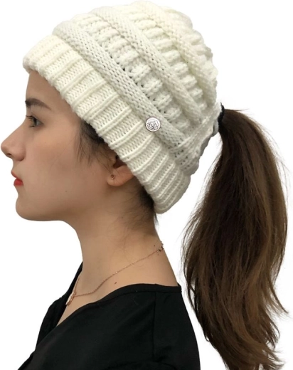 Praktická, teplá čiapka so špeciálnym otvorom na cop. Aj spod čiapky sa môžete pochváliť svojimi krásnymi vlasmi. Keď ju zložíte, vaše vlastné vlasy už nebudú rozcuchané.