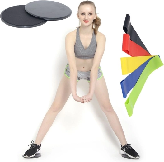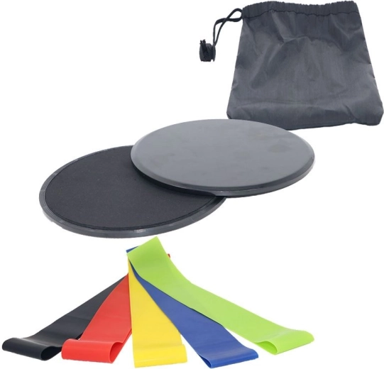 Kĺzacie disky + 5 ks cvičebných gúm – čierne