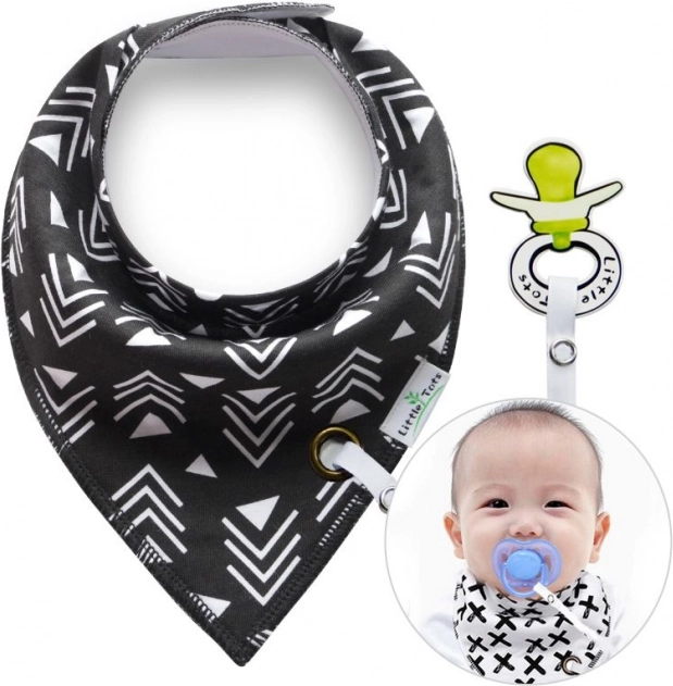 Elegantná šatka pre bábätká s praktickým závesom na cumlík ponúka nielen štýl, ale aj funkčnosť. Je ideálna ako slintáčik, ktorý chráni oblečenie pred vlhkom.