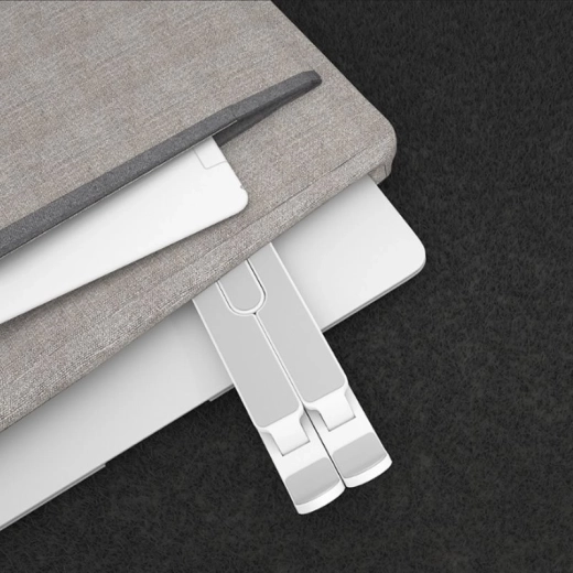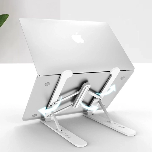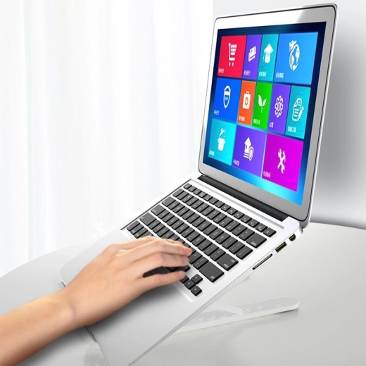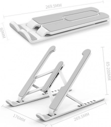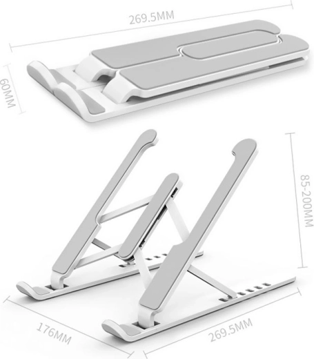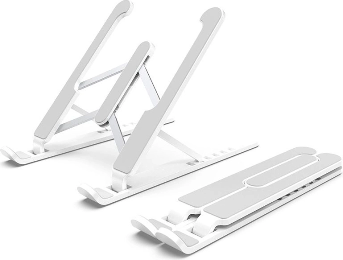Praktický skladací stojan pre váš laptop zabezpečuje správnu ergonómiu práce a udržiava správne držanie tela. Vďaka svojmu dizajnu podporuje efektívne chladenie zariadenia. Ideálny na prácu s notebookom, tabletom, smartfónom alebo knihami.