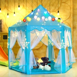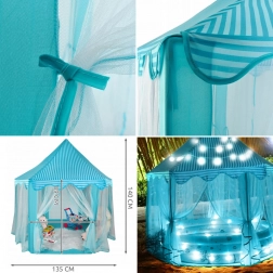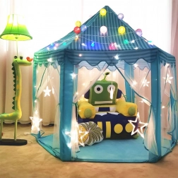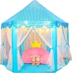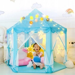 Veľký, roztomilý modrý detský stan, ktorý stimuluje detskú predstavivosť a poskytuje pohodlný priestor ako na hranie, tak aj na relaxáciu. Rýchlo sa rozkladá a je ľahko prenosný, čo je ideálne pre zábavu vnútri aj vonku.