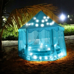 Tento hexagonálny detský stan je perfektnou voľbou pre všetky malé princezné a princí, ktorí túžia po kúzelnom mieste na svoje hry. Vďaka svojmu vzdušnému dizajnu s možnosťou presúvania záclon ponúka stan dostatok miesta pre niekoľko detí. Je rýchlo zložiteľný a prenosný vďaka priloženej skladovacej taške s držadlom.