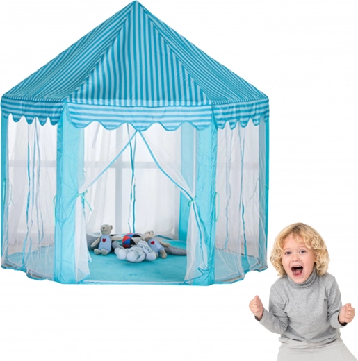 Hexagonálny detský stan pre interiér aj exteriér - modrý