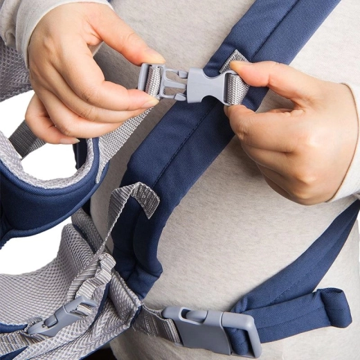 - Regulácia ramenných popruhov: Ramenné popruhy sú nastaviteľné, čo umožňuje prispôsobenie nosidla individuálnym potrebám a veľkosti rodiča.