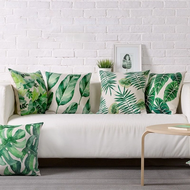 - Nadčasový dizajn – zelené listy na neutrálnom podklade ladia s mnohými štýlmi.