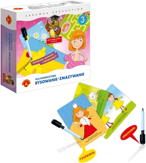 Vzdelávacia sada ALEXANDER Sova Múdra Hlava – Pre dievčatá: písanie a mazanie je ideálnou pomôckou pre predškolákov. Pripraví deti na školu hravou formou: podporuje správny úchop ceruzky, koordináciu oko–ruka a sústredenie. Vďaka suchostierateľným tabuľkám možno úlohy opakovať, opravovať a postupne zdokonaľovať písmo aj kresbu.