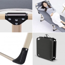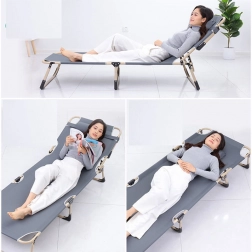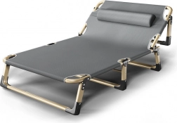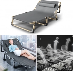 Praktická a pohodlná skladacia posteľ do kancelárie, domova aj na kempovanie. Ponúka stabilnú oceľovú konštrukciu, 4-stupňové polohovanie opierky hlavy a odolný priedušný poťah z Oxford látky. Vďaka kompaktným rozmerom po zložení sa ľahko prenáša a skladuje, zatiaľ čo protišmykové nožičky zaistia bezpečné používanie na rôznych povrchoch.