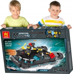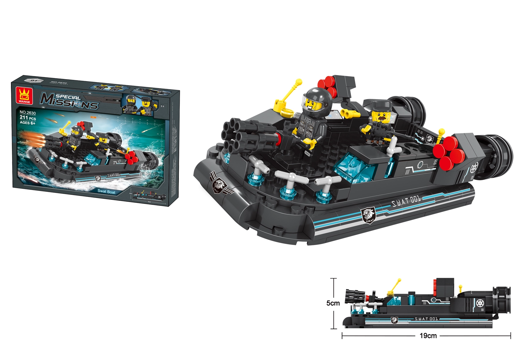 Táto stavebnica policajného motorového člna prináša deťom zábavu aj učenie v jednom. Po zostavení sa môžu pustiť do role strážcov zákona a hliadkovať na vodnej hladine. Vďaka dvom priloženým figúrkam je hra ešte pestrejšia a príbehy realistickejšie.