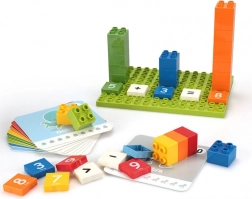 Táto sada kombinuje zábavu so vzdelávaním: pomocou číselných kociek a aktivít na kartách sa deti učia počítať, porovnávať množstvá a skladať jednoduché rovnice. Farebné dieliky motivujú k samostatnej hre a prirodzene podporujú predstavivosť aj priestorové vnímanie.