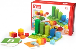 Veľké, ľahko spojiteľné kocky podporujú jemnú motoriku a umožnia stavať veže, vzory aj jednoduché modely podľa čísel.