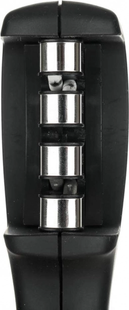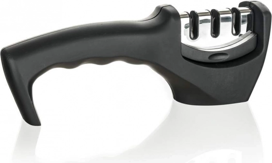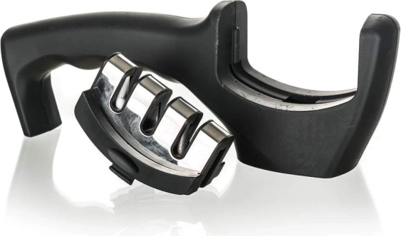 Je vyrobený z ABS plastu s povrchovou úpravou soft touch a protišmykovou základňou pre jednoduchú a bezpečnú manipuláciu. Brúska je vhodná pre pravákov aj ľavákov a má 3 brúsne kamene. Diamantový kameň slúži na opravu poškodených čepelí a na ich odstránenie nerovností pred brúsením. Volfrámový kameň nabrúsi čepeľ a obnoví jej optimálny tvar. Tretí kameň je keramický a je určený na leštenie čepele a na vyhladzovanie povrchových nedokonalostí.