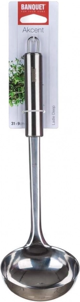 Naberačka BANQUET AKCENT je spoľahlivý pomocník na servírovanie polievok, omáčok aj vývarov. Minimalistický a funkčný dizajn zaručuje nadčasový vzhľad a dlhú životnosť. Rad AKCENT spĺňa nároky profesionálov, pritom je skvelou voľbou aj na každodenné použitie v domácnosti.