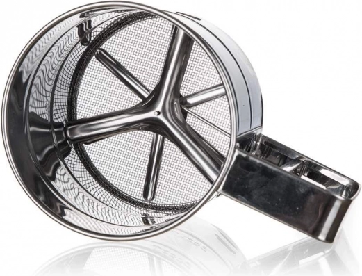 Praktické mechanické sito na múku AKCENT z nehrdzavejúcej ocele na rýchle a rovnomerné preosievanie múky, práškového cukru a ďalších sypkých surovín. Zabezpečí jemnú konzistenciu, lepšie prevzdušnenie cesta a zmes bez hrudiek. Odolné prevedenie z nerezu, pohodlné držanie a jednoduchá manipulácia.