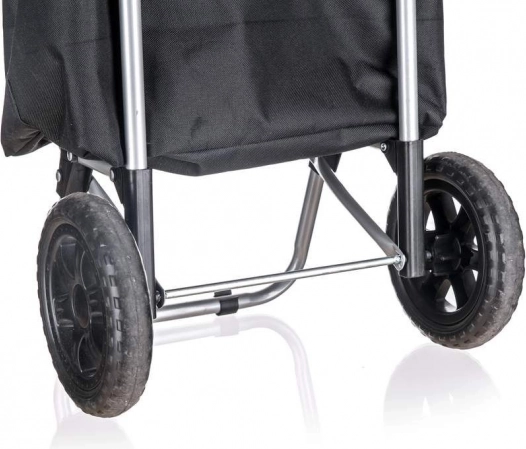 Kovová konštrukcia so vystuženou odkladacou plochou zaisťuje stabilitu a nosnosť až 30 kg. Veľké plastové kolesá sa ľahko pohybujú po chodníku, dlažbe aj nerovnom povrchu.