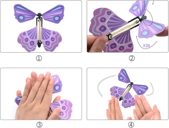 Kúzelný lietajúci motýľ je fascinujúca hračka pre deti, ktorá vnesie radosť a prekvapenie do každého okamihu. Umiestnite ho do narodeninového priania, knihy, listu alebo pozvánky a sledujte, ako prekvapený úsmev rozžiari tvár obdarovaného. Po otvorení sa objaví krásny lietajúci motýľ.