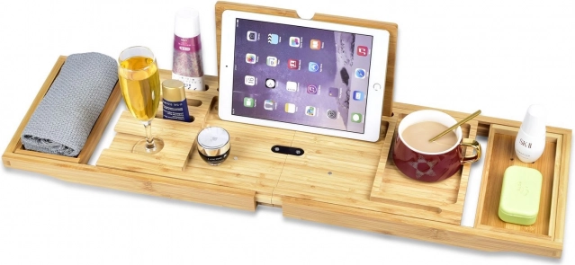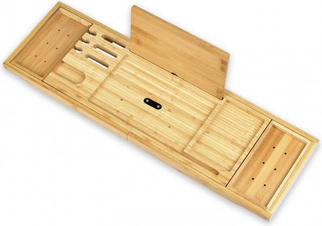 Perfektné riešenie pre vytvorenie atmosféry kúpania sa vo vašej kúpeľni. Bambusová vaňová polica je navrhnutá tak, aby sa zmestila na rôzne veľkosti a tvary vaní. Je pripravená na okamžité použitie bez potreby montáže. Súčasťou je tiež slot na tablet a špeciálny držiak na pohár vína, čo umožňuje plne relaxovať počas kúpania.