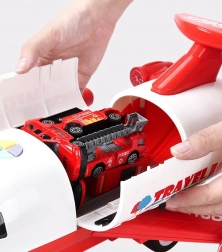 Objavte kreatívnu hru s červeným dopravným lietadlom, ktoré pojme všetky priložené autíčka a v priebehu chvíľky ich vypustí do akcie. Na streche nájdete 4 tlačidlá pre svetelné a zvukové efekty, vďaka ktorým je každá misia ešte realistickejšia. Otvárací trup slúži ako praktický úložný priestor a zadný vystreľovač umožní autám bleskový výjazd.